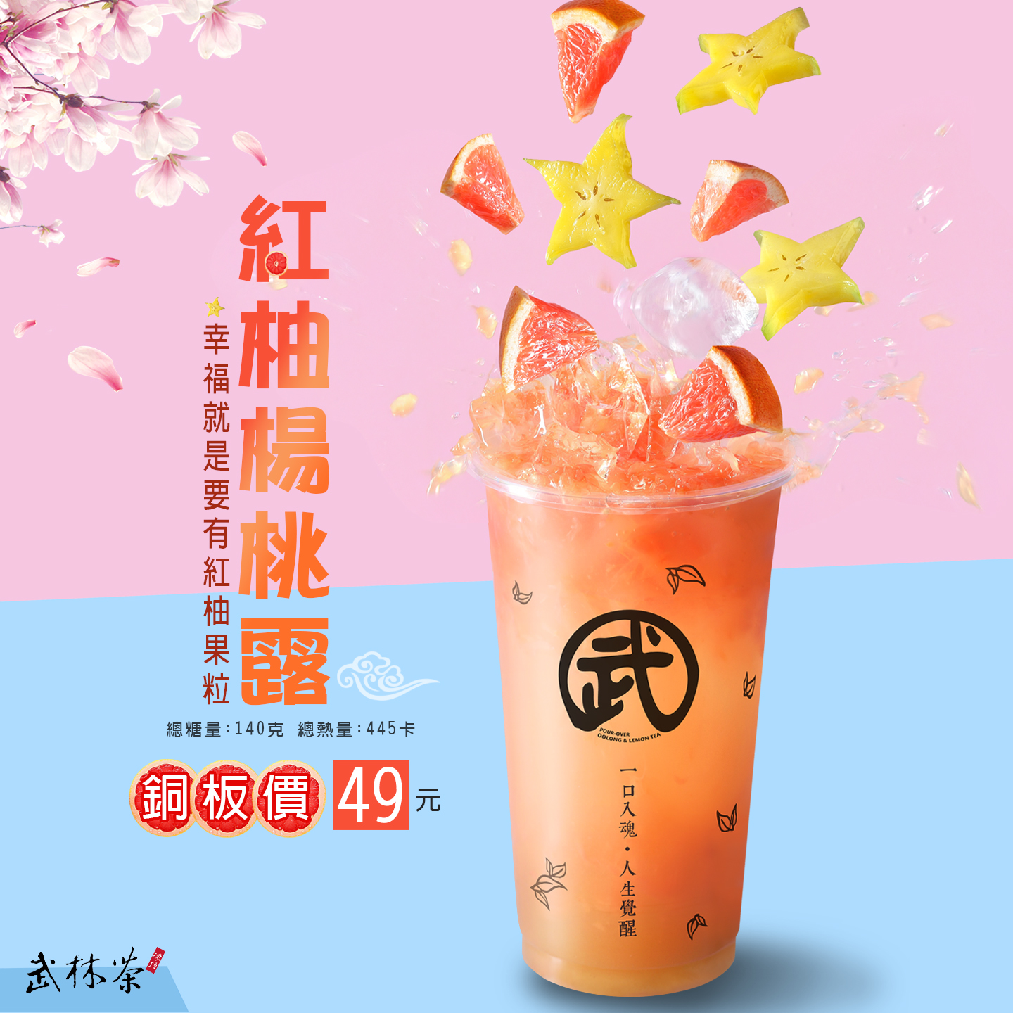 #紅柚楊桃露 #限時 #銅板價 小朋友才做選擇我都要~~!!! 天氣這麼熱 到底是要來一杯解渴的楊桃烏龍,還是要來一杯果粒多又清爽的凍頂紅鑽葡萄柚呢? 告訴你!不要再選了!小朋友才做選擇! 紅柚楊桃露 葡萄柚+楊桃釀一次都給你 還有更誇張的49元銅板價 開心了吧ーʕ⁰̈ʕ⁰̈ʔー還不趕快來喝爆她! 葡萄柚取肉厚工費時,數量有限售完為止! 特價僅此一檔錯過不在 #武林茶 #鮮泡 #人氣手搖飲 #現泡好茶 #果茶之王 #連鎖加盟 注意事項: 圖片僅供參考請以實物為準! 飲品熱量 紅柚楊桃露[L] 總糖量:140克 總熱量:445卡